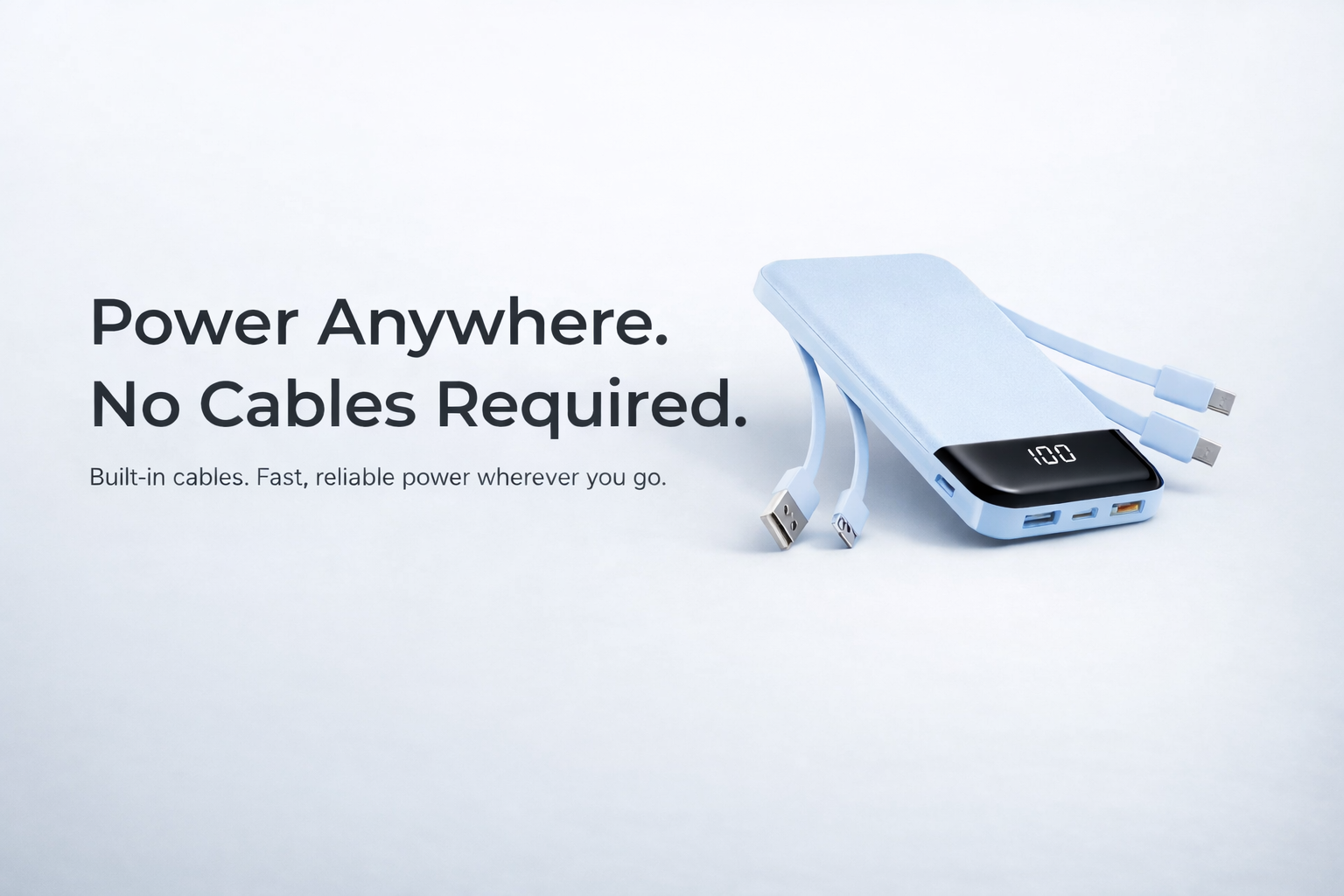 All-in-One Portable Power Bank with Built-In Cables